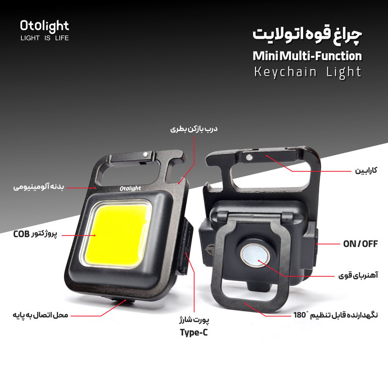 چراغ قوه جمع و جور و قدرتمند که برای استفاده در همه جا و برای همه کس ضروری می باشد ، در خانه ، محل کار ، خودرو ، پارک ، کوهنوردی، کمپ های شبانه، ماهیگیری و .... همچنین این چراغ را میتوانید روی مونوپاد یا سه پایه ببندید. این گجت کاربردی از کیفیت ساخت بسیار خوبی برخوردار است و بدنه آن از فلز (آلیاژ آلومینیوم) ساخته شده است و ضد ضربه، ضد رطوبت و ضدآب است (مقاومت در برابر آب با استاندارد IPX5 waterproof). این محصول شارژی است و از یک باطری داخلی ظرفیت بالا تغذیه میکند که با کابل USB تایپ C به وسیله آداپتور یا پاوربانک قابل شارژ است. این محصول علاوه بر حجم جمع و جور آن ،بسیار سبک هم ساخته شده است. با فشار دادن کلید روشن خاموش کن چراغ قوه سه حالت کم نور - پر نور و چشمک زن فعال می شود و برای استفاده از حد اکثر توان باید کلید را فشار داده و نگهدارید . در این گجت بسیار کاربردی حالت های مختلفی برای سهولت استفاده تعبیه شده مانند هنربای قوی ، گیره تکیه کننده ، قفل جاکلیدی و آویز و همچنین یک در بازکن بطری نیز در آن تعبیه شده است و آن را به یک همراه کامل یا یک جا کلیدی کامل و واجب تبدیل کرده است.