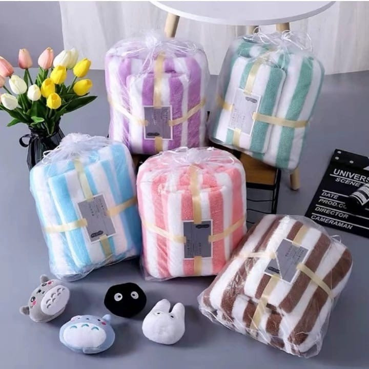 پک کادویی یک عدد حوله پولیشی استخری ویک عدد حوله دستی از جنس نانو میکروفایبر پولیشی با طرح راه راه بوده و قابلیت آبگیری بی نظیر بصورت پک روبان دار و توری دار بسته بندی شده است